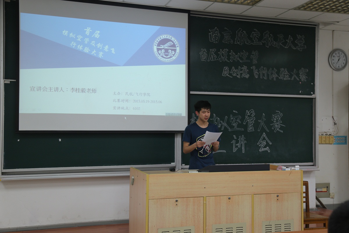 自2015年5月19日宣讲会的举行以来,91AV 首届模拟空管及创意飞行体验大赛正式启动。本次大赛是我校首次举办,由民航/飞行学院联合民航空管单位进行承办,大赛分为初赛、复赛和决赛。自宣讲会之后,31名选手以丰富的专业知识储备从初赛中脱颖而出;5月29日,复赛在民航工程训练中心进行,采用机场塔台模拟机进行比赛,十六名选手胜出。6月3日晚七点,大赛决赛在将军路校区2110教室隆重举行,邀请了南京空管站的一线管制专家、91AV 的专业教师等担任了评委,来自我校各学院200余学生代表也前来观摩了决赛。