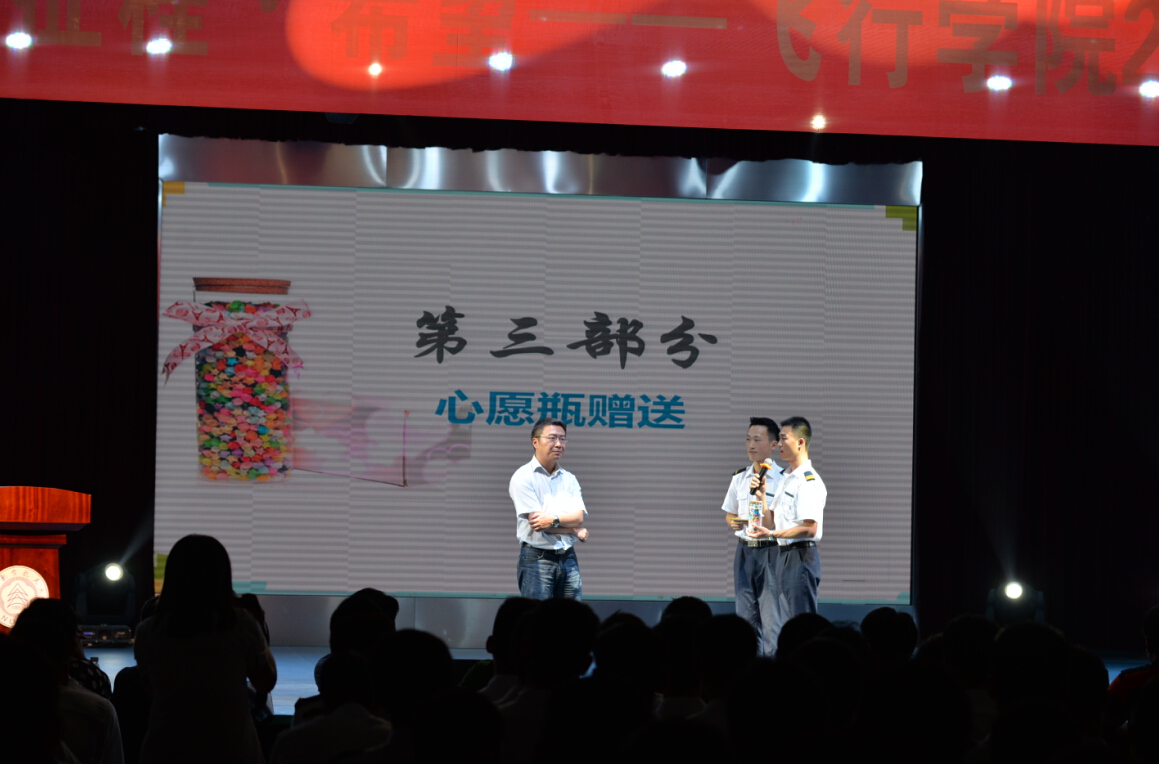 活动伴随开场视频《在路上》的音乐开始,视频以一个飞行学员的梦境为主线,重温了过去一年他们在南航学习生活的点点滴滴。紧接着,情景剧《我和南航的故事》上场。情景剧分为七幕,包含早操、上课、宿舍聊天、周例会等场景,从学习、生活、习惯等不同方面全方位展现了飞行学员的日常生活。剧中任课老师和辅导员的友情加盟使表演更加生动有趣。“我口诉我心”环节学生以话外音的方式,配合幻灯片,以独特的方式表达了对学院和老师的感恩之情,以及对学校的不舍和对自己未来的展望。随后,学生代表给学院送上了一份特别的礼物——“心愿瓶”,心愿瓶里装入了数百个小星星,小星星上记录着全体飞行学员对学院的感激和祝福。出征仪式在辅导员张学财老师给学员的寄语中达到高潮,张老师以一个军礼表达出他作为一个空军大校为学员送别的方式。接近尾声,宋凯副书记也对即将外训的学员们作了关于“外训注意要点”的讲话。最后,出征仪式在全体飞行学员铿锵有力的宣誓中画上圆满的句点。
