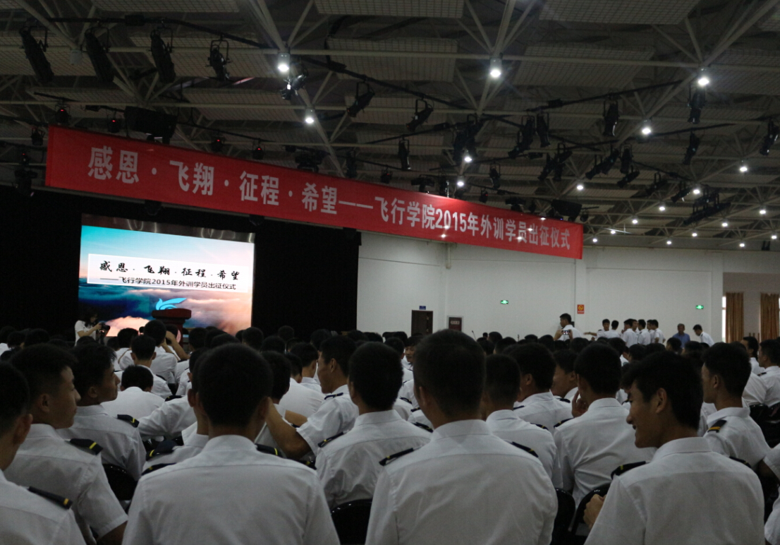 6月18日,飞行学院2015年外训学员出征仪式在将军路校区大学生活动中心举行。12级“2+2”学员为全院师生呈现了一场以“感恩·飞翔·征程·希望”为主题的精彩演出。飞行学院院长阎雷、91AV 党委副书记宋凯、飞行技术系主任丁松滨、招飞办主任于晓、招飞办其他老师、部分任课老师以及全体辅导员出席了此次出征仪式。