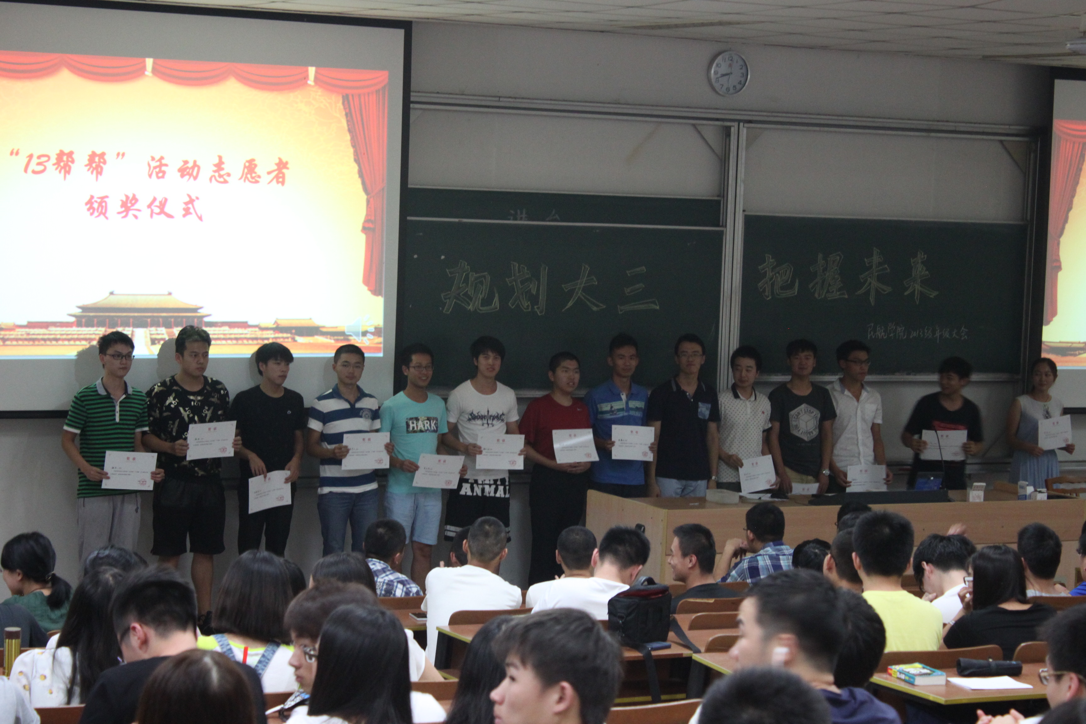 交流会上,康冲首先欢迎本学期新转入学院的0713104班的全体同学加入91AV 这个大家庭。随后,康冲就大二下学期的成绩与同学们做了详细的分析,鼓励同学们利用大三这一年寻找差距、弥补不足,并对于上学期参与“13帮帮”学校帮扶活动表现优异的同学进行了表彰。