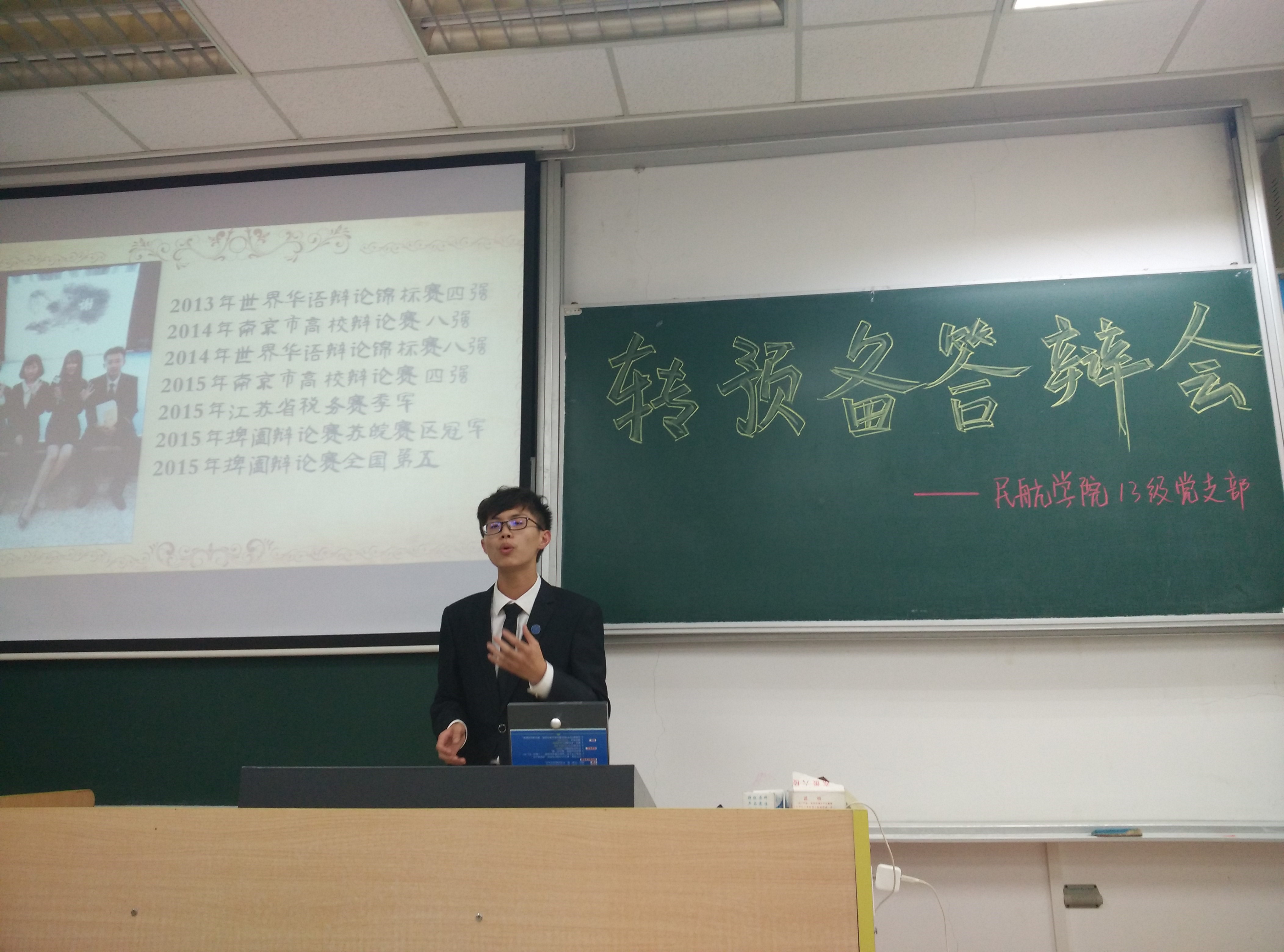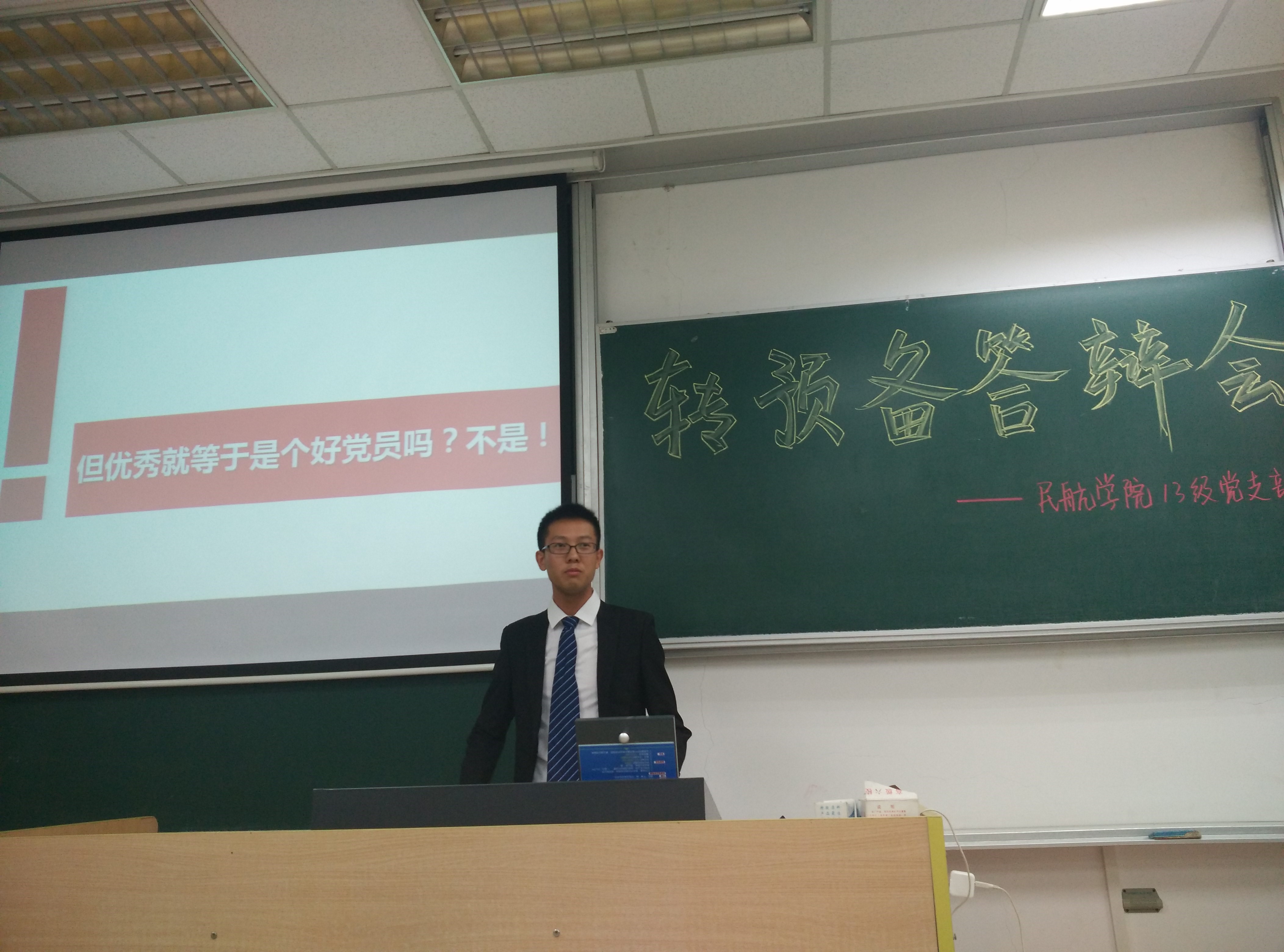 会议伊始,13级党支部书记路红飞首先讲解了本次答辩的流程,指出本次答辩严格按照党员发展流程开展,并邀请年级辅导员、党员代表、普通学生代表担当本次答辩的评委,充分体现了公平公正公开的原则。随后,经过精心挑选的30余名在思想政治、学习成绩、学生工作等方面有突出表现的入党积极分子依次上台答辩。每一名候选人从对党的认识、志愿服务、自身不足三方面全方位的展现的自己大学两年来的成长。其中0713303班学霸成正强,不仅自身成绩优异,还通过年级13帮帮平台帮扶了200余名同学,真正把党的宗旨“全心全意为人民服务”运用到了实际中,并提出了“优秀并不等于好党员”独到见解,赢得了在场同学的阵阵掌声;南航校辩论队辩论健将王赟,曾代多次表南航参加华语辩论赛等大赛,纵横捭阖,舌战群雄,为南航在江苏省辩论界赢得了一席之地,他认为入党不仅仅是一项荣誉,更要把党员当成是标杆,让自己时时刻刻不忘使命。会议中,康冲对每一位候选人的入党动机、思想认识、大三规划进行了详细地提问,并对候选人的展示进行了点评与指导。