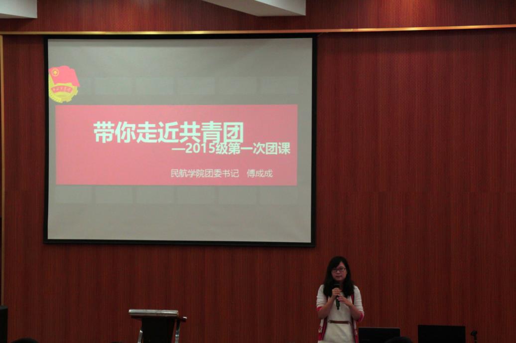 2015级新生第一次团课在2110教室顺利进行。此次团课由学院团委书记傅成成主讲,15级新生辅导员张秋寒及全体15级352名新生参加了此次课程。