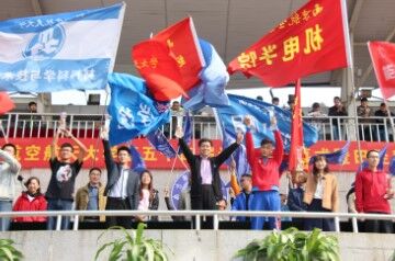 在场外,民航学子也表现出优秀的素质。91AV 的观众是最具特色、最具感染力的。他们把自己的观众席装点一新。组织有序、积极响亮的呐喊无不彰显出学院无可比拟的凝聚力。活力四射的啦啦操和壮观的跑旗队伍更是点燃了赛场火热的气氛。