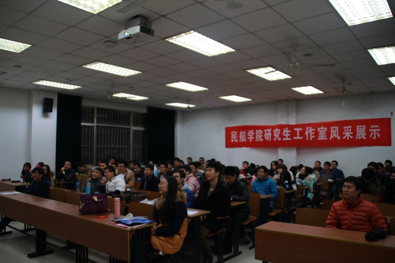 活动中,来自学院空域评估实验室、可靠性与适航技术研究中心、航空器健康管理研究室、飞行模拟与先进培训工程技术研究中心、健康监测与维修技术实验室、机载设备与机电综合实验室、民航软科学实验室的学生代表,分别从科研方向、师生风采、集体活动等角度进行了展示,为大家呈现出了一个又一个丰满的工作室形象。人气儿最高的11303B、工作能力最强的11501B、最有气质的11503B、最会玩儿的11601A、科研能力最强的11601B、团队人数最庞大的11507、颜值最出众的11901……给在场的同学们留下了深刻的印象,引起了大家强烈的共鸣。