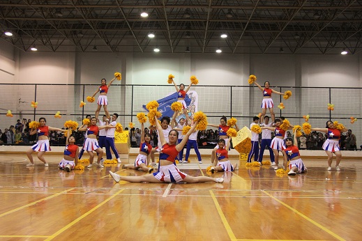 18点30分,比赛在大家的无限期待中正式开始,各学院大、小团体按照事先抽签所定顺序,依次出场。赛程过半,在大家的期待中,我院小团体闪亮登场。他们如同跃动的精灵,是热情与灵动的完美融合,将啦啦操的动感与律动演绎的淋漓尽致。就在大家还沉浸在我院小团体的精彩表演当中时,一群活泼开朗、笑容满面的男生女生们踏着小碎步跑入场中,我院大团体闪亮登场。开场一声响亮的“哈!”里充满他们的自信与属于民航人的骄傲;动感的节奏,配合轻盈的舞步,他们在展现独特的自我;男生们跑动的太空步,女生们甩动的马尾辫,突出着这一群帅哥靓女们的个性;男生女生搭档又充分展示出他们开朗、直爽的性格;表演结束时,传统项目“架人梯”则向大家演绎了团结、协作、互相信任的团队精神。