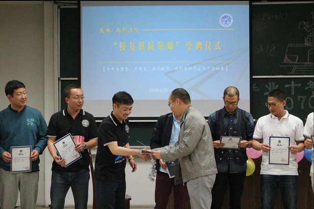 首批校友职场导师均来自91AV 毕业十年的空管专业的杰出青年校友,学院领导为导师们颁发聘书。聘任仪式上,即将步入职场的毕业生与自己同一工作单位的校友导师现场结对。职场导师将对这些职场新人给予全面的指导,帮助他们更快地熟悉单位、适应岗位、融入文化,以便更早的职业起步、更快的事业发展。
