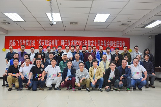 在聘任仪式结束之后,还举行了2016年校友十周年聚会师生座谈会,通过《毕业十周年》视频深情展现了06届毕业生在校的美好时光,为整个活动奠定温情基调。随后,由空管专业15级同学号的学弟给学长们送上手写明信片祝福,勾起了校友们对自己曾经的大学初梦想的回忆,并因为学号而牵起了奇妙缘分。紧接着师生们就职业生涯、生活进行深刻的交流讨论,在交流中,06届校友提到“三个提问”、“三个感动”、“三个感谢”以及“三个邀请”,在表达出自己希望参与职场指导活动意愿的同时,也衷心希望和学院保持合作与交流的关系,真心邀请学院老师到一线单位交流工作经验,诚邀在读本科生到空管基地参观。