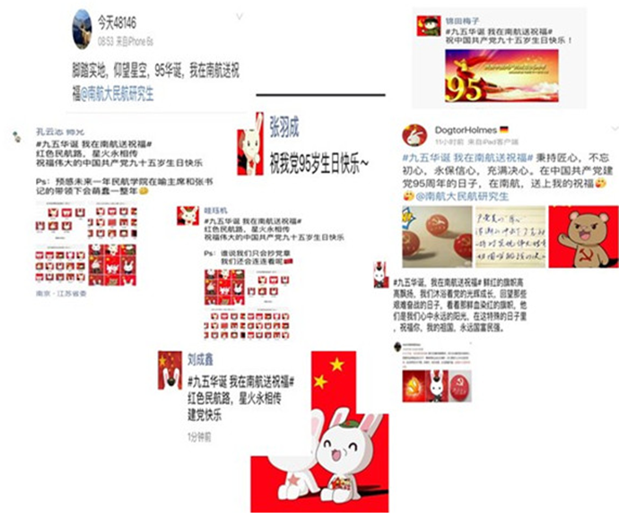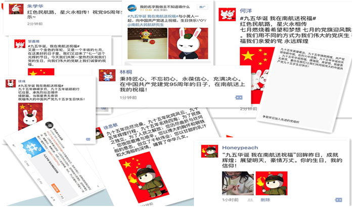 今年是中国共产党成立95周年,也是红军长征胜利80周年。为庆祝建党95周年,践行“两学一做”学习教育的要求,91AV 2015级研究生党支部组织党员、入党积极分子开展庆祝建党95周年之“九五华诞,我在南航送祝福”活动。