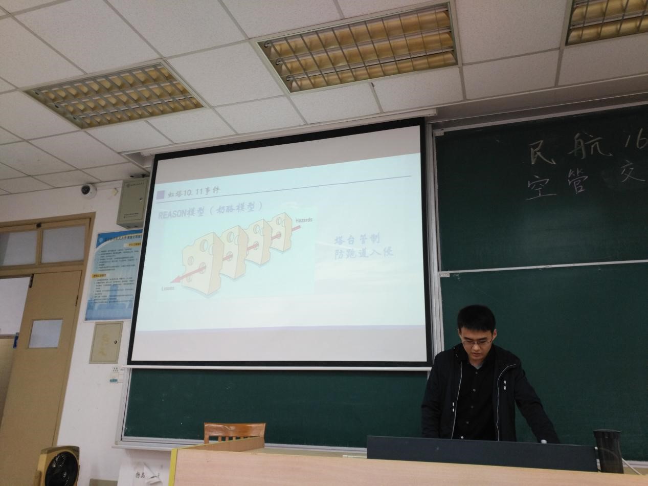 交流会从10月11日的上海虹桥机场事件说起,播放了虹桥事件的视频资料,同时与历史上一些“跑道入侵案例”进行了对比,并通过数据分析,总结了由管制员造成的飞机事故仅有极小的比例。基于这一事件背景,王挺借用REASON模型(奶酪模型)形象地说明了我国保障飞机安全飞行的体制,并以“空管专业幸福感”为题将一线管制员的培养过程和工作状态进行了介绍。最后,孙樊荣老师描述了当今人才市场招聘高标准的现状,强调了努力学习的重要性,幽默的事例、令人深思的观点让同学们又更加深刻的了解了空管专业。