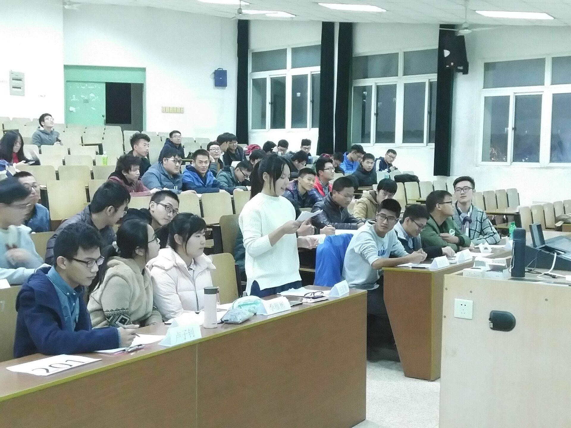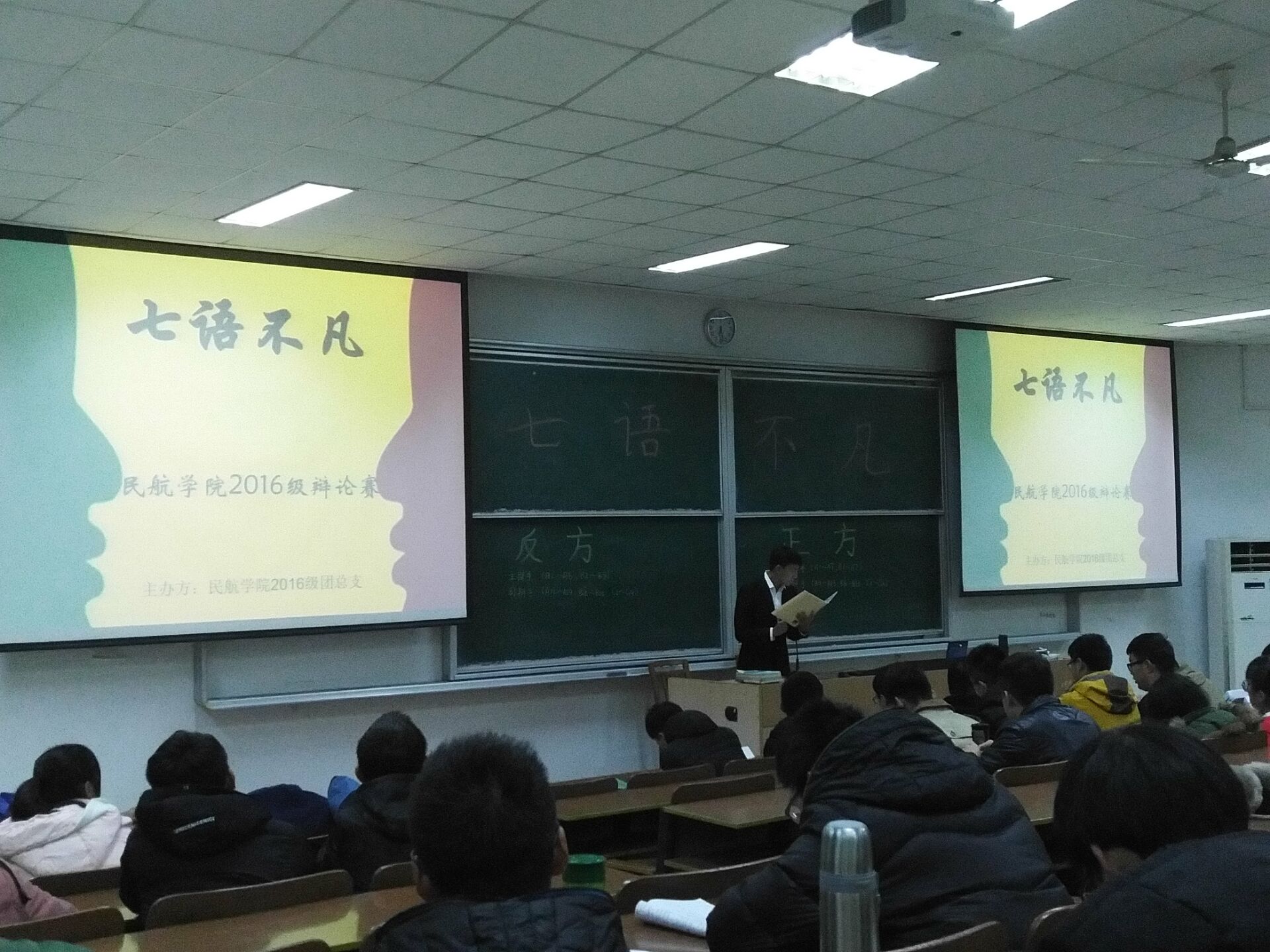 12月7日18点30分,91AV 2016级在4201教室举行了“七语不凡”辩论赛初赛的角逐。2016级全体学生踊跃报名参加,十二个班级共派出了十二支优秀的辩手队伍,并派出各班主席团代表,共同进行了一场别开生面的辩论赛。同学们的妙语连珠将此次辩论赛氛围一次次推向高潮,使初赛圆满落幕,其中201班、301班、303班、401班、701班与702班的辩论队伍表现出众,成功晋级复赛。同时,评审团也结合辩手的综合素质,评选出了最佳辩手,他们将直接晋级决赛,进行最后的雄辩。