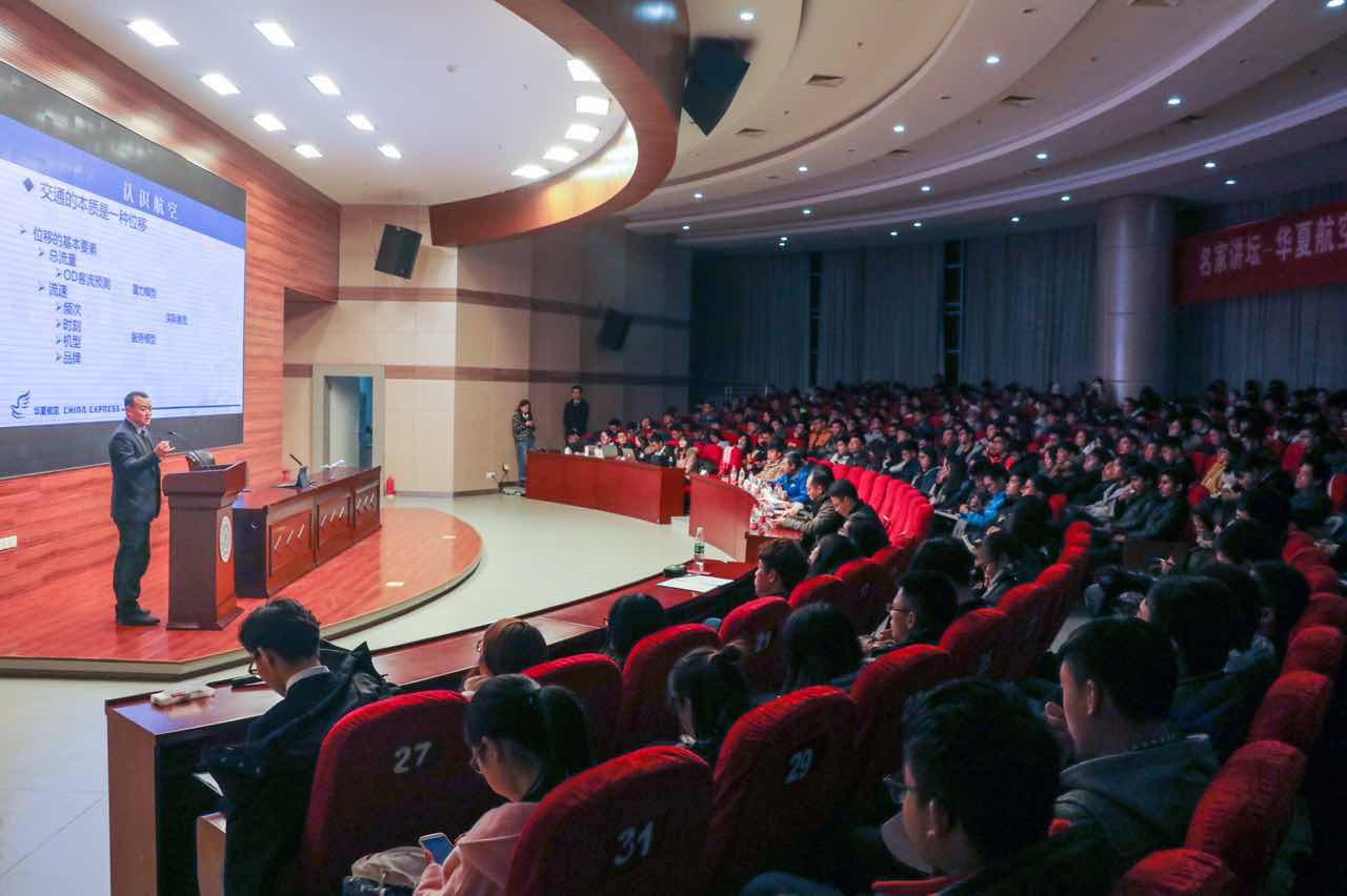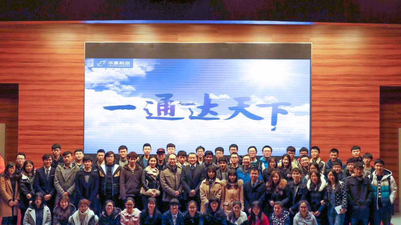 晚上,吴龙江先生作题为“中国支线航空的探索与实践”的专题讲座,为学生讲述了民航业的现状、支线航空的发展和华夏航空的和谐、执着、永不迷航的特质。学生纷纷表示开阔了眼界,增长了见闻。现场问答交流环节,同学们积极主动,踊跃发言,气氛热烈,吴总答疑解惑耐心而细致。最后,吴总还和同学们分享了一句他一直坚守的职场格言:做一个沉得住气的民航人,逐步积累自己的无形资产。