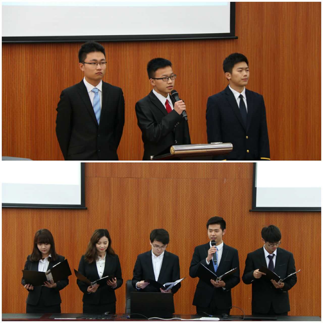 首先是女生部部长们带来的交流,他们从以下三个方面来简述上学期的工作——工作成果、改进方面和工作计划。其中展示了上学期本院在校第五十五届健美操大赛中荣获特等奖的佳绩并强调了部门将为三月份新一轮的啦啦操比赛活动做好充分的准备。在短短的5分钟内,我们看到了荣誉背后默默付出的他们,感谢这些付出为七院带来的无上荣耀。