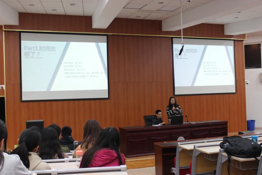 年级大会的开始,播放了一段户外约拍的视频,同学们回忆了上学期的大学生活,并浅谈了自己的梦想,轻松的约拍视频给本次大会营造了一种温馨的氛围。接着,辅导员刘思辰老师通过各专业各年级绩点的比较,分析了大一上学期同学们的学习情况,并对各班上学期的学习成果做了总结,她强调了努力学习的重要性,激起同学们在学习的长征路上昂扬的斗志。对于梦想,绩点是最硬的保障,只有过硬的学习成绩,将来的简历才能给我们的梦想添彩。