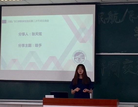航迹工作室主任张天炫由三个地点讲述了三个给予的故事,给予之后,自己获得的是成长和别人的支持;学生会主席史静远最后一位登台,他讲述了“民航记忆博物馆”和“五四火炬接力”的故事。每一次为学生工作付出的辛苦与汗水,带来的是感动与自豪。他送给大家这样一句话:“做学生工作像是竹篮打水一场空,可是竹篮打不到水,却可能捉到鱼”。