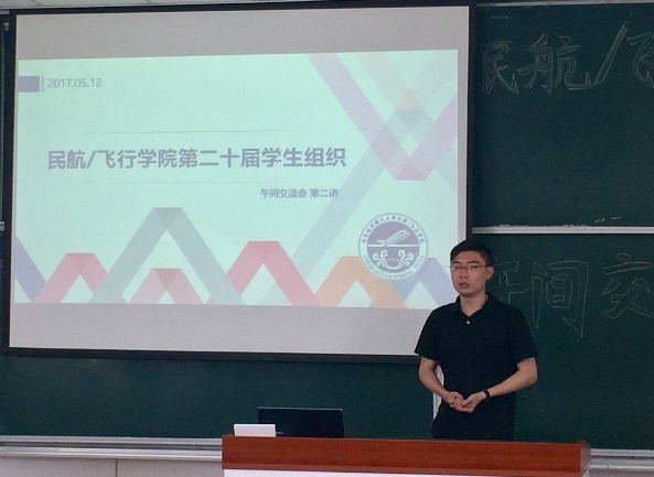 2017年5月12日,91AV 第二期午间课堂在6202如期开讲。91AV 团委书记傅成成、9位民航/飞行学院学生会主席团成员以及十个部门的40余名学生干部参加了本期午间课堂。本期课堂由主席团的六位常委主讲,分别就“付出”、“团队”、“完美主义”、“交流”、“给予”和“故事”六个关键词,分享他们的经验与体会。