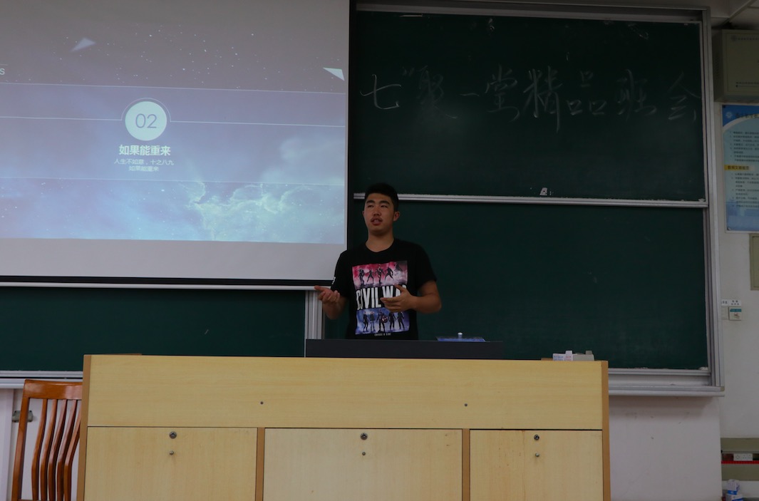 在学长进行了班会的主要内容之后,导员也为我们进行了一番励志共勉。从她的大学生活讲述至她的毕业去向和未来打算,而后又谈及与我们共度的大学生活,鼓励我们奋发前进的同时,也给我们吃了一颗定心丸。