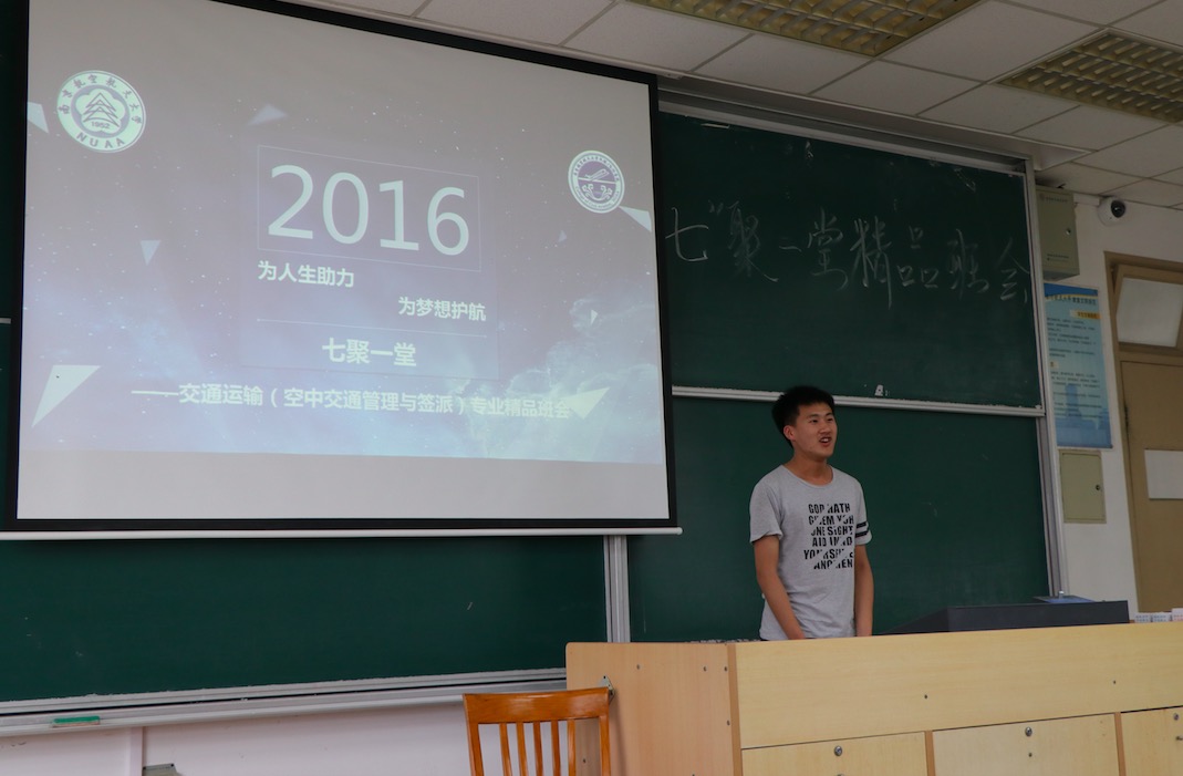 在步入91AV 的大半年的时间里,同学们即使已经对专业有了一定的认识与了解,然而,对未来的道路仍有些许迷茫。于是,2017年5月23日下午两点,91AV 2016级空中管理与签派专业全体同学在6203教室,就“为人生助力,为梦想护航”召开了“七聚一堂”系列精品班会。