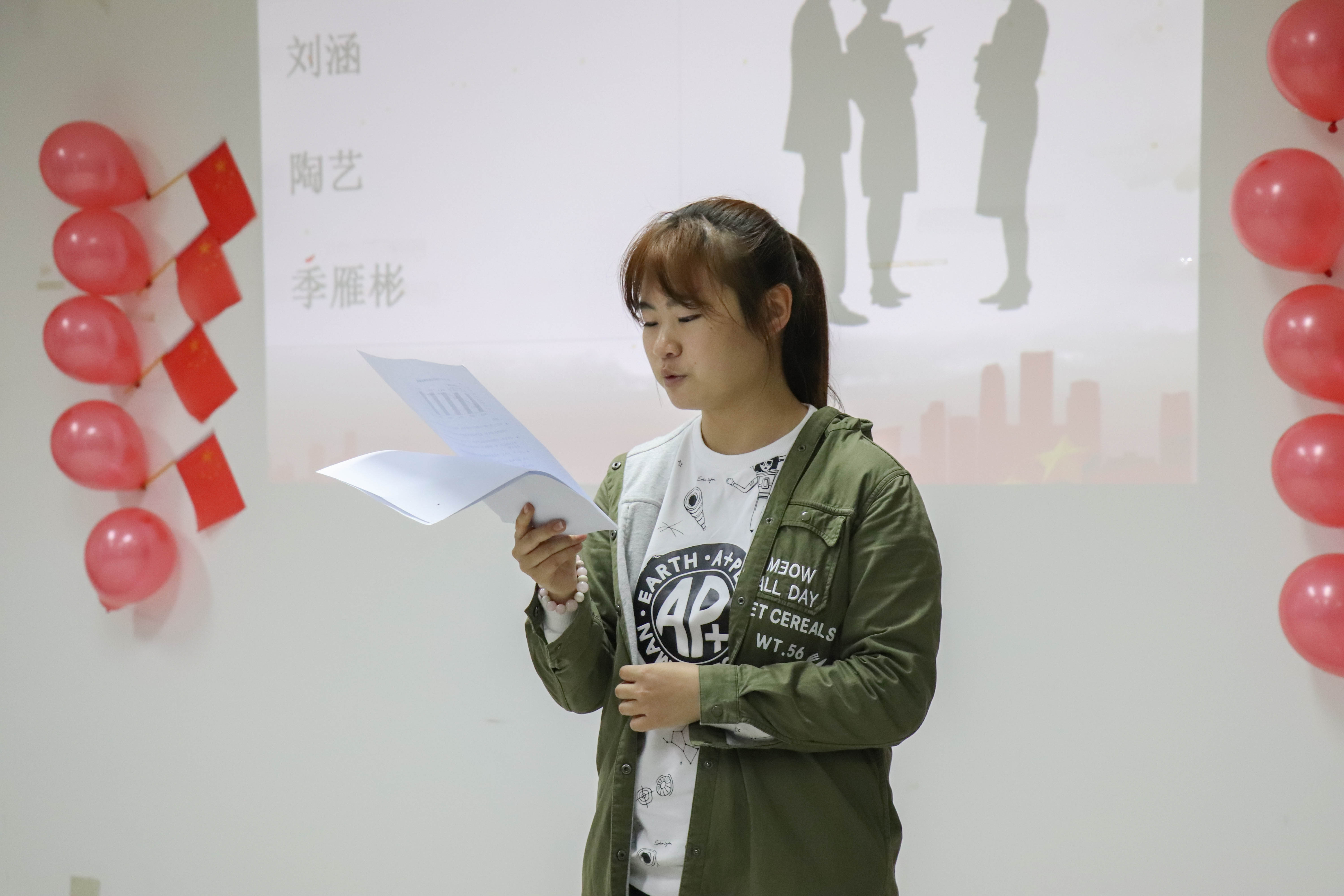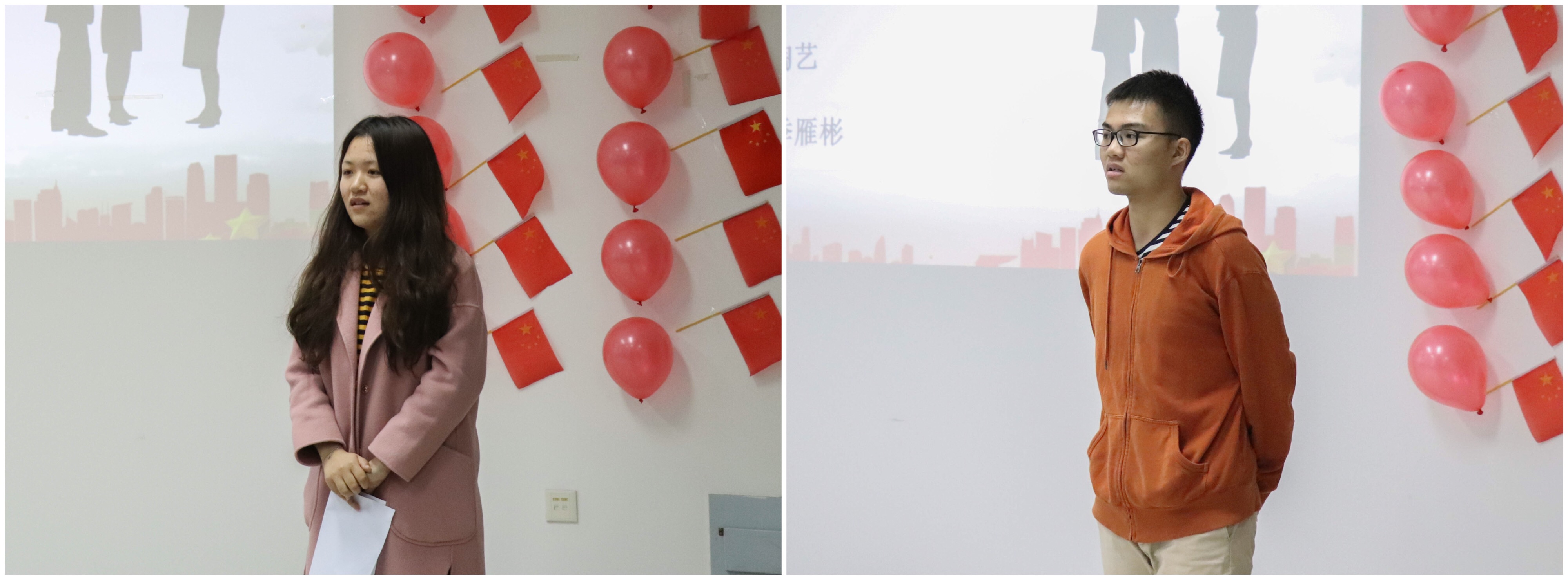 振奋人心的视频后,会议正式进入了第一个板块“十九大我来谈”,三名同学从不同的角度侃侃而谈,和大家分享了他们眼中的中国的发展新变化。刘涵同学表示,这五年来,社会思想不断提高,爱国教育从之前的空喊口号到如今的真诚呼喊和笃行实践。大家又再从中国的交通运输角度观这五年的变化,季雁彬同学选取共享单车、高铁、民航业的发展变化,讲述了国家随着经济发展、互联网发展,交通运输行业达到了便民利民、舒适安全的新高度。