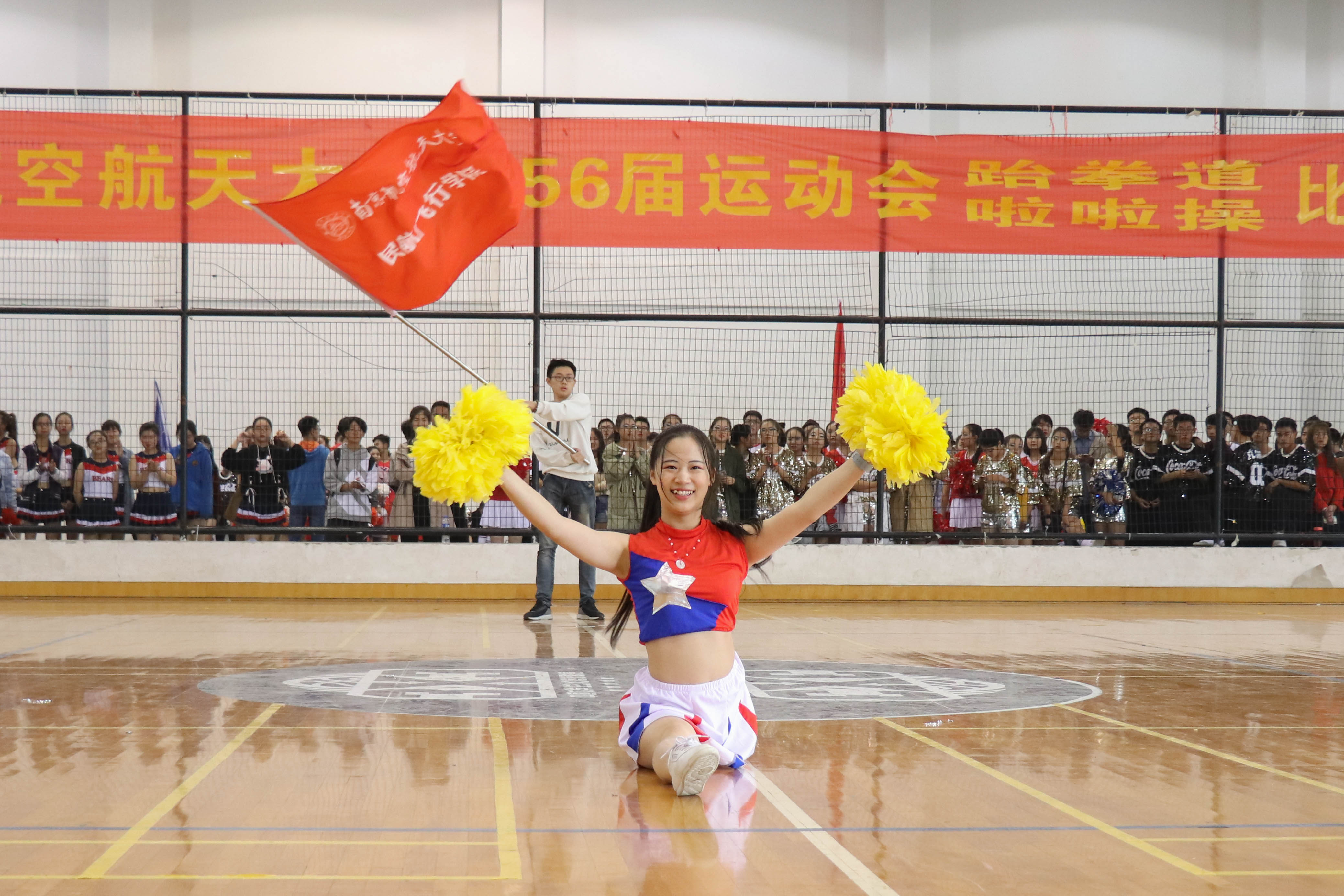 10月22号上午9点半,在十九大的召开与六十五周年校庆之际,91AV 于将军路校区的体育中心正式举办第五十六届运动会啦啦操比赛。比赛分为小团体、单人、大团体三个项目,全校共有13个院派出代表团队参与比赛,以展现我校学子的青春风采,调动全校运动健身的良好氛围,民航飞行学院更是积极地参与到其中。