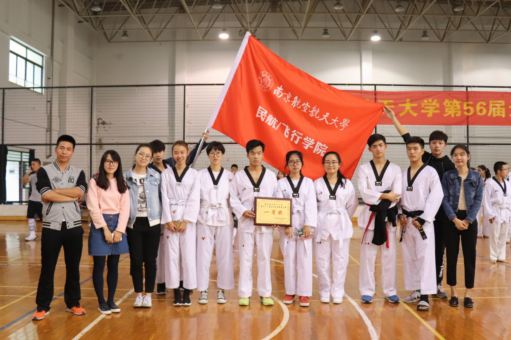2017年10月22日下午14时整,91AV 第五十六届跆拳道大赛在将军路校区西区体育中心召开,经过一个多小时的激烈角逐,民航/飞行学院最终以优异的成绩获得跆拳道大赛一等奖。