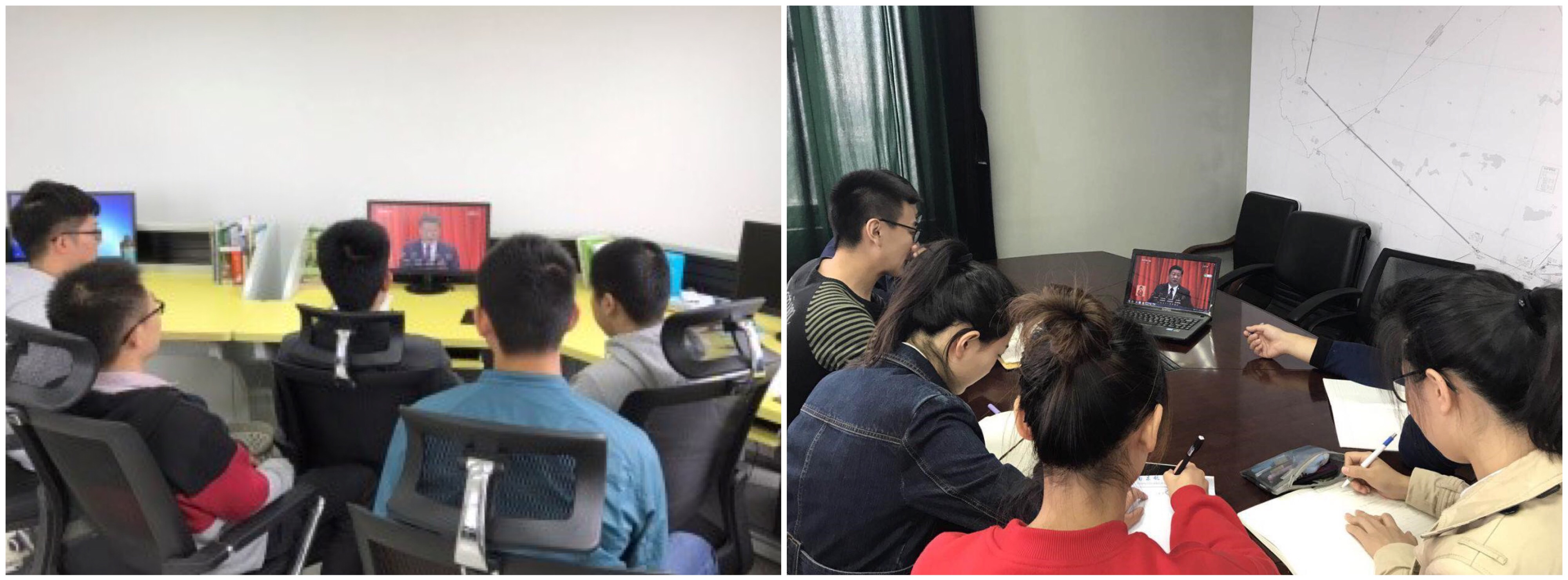 10月18日上午9:00,91AV 研究生党支部全体党员以党小组为单位,观看十九大开幕式盛况,在第一时间学习领会大会精神。直播期间,研究生党员们聚精会神,用心聆听习总书记的重要讲话,边看边记,梳理重点讲话。