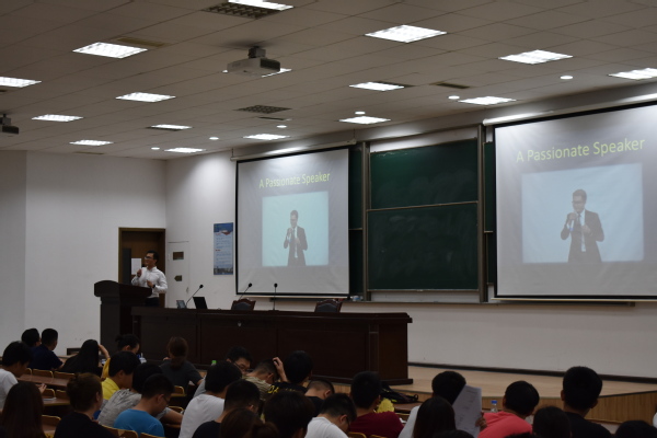 夏日的晚上,封闭的教室显得异常闷热,几位授课老师没有被炎热所影响,将自己的知识和经验倾囊相授。在热情洋溢的分享后,2014级辅导员梁欢给毕业生们送出自己的寄语。他对全体学生说“虽然辅导员的角色带走了我四年的时光,但是在这四年中我认识了你们,这是我人生中最幸运的事。”同学们由衷为他送去了热烈的掌声。
