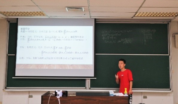 受聘仪式结束后,学生教员杜长乐开始为同学们进行高数考前辅导。他将高数期末考试中所涉及到的知识点进行系统性地总结和归纳,并对考试重点和难点展开进一步梳理,例如对“七类积分”等问题的深度解析。通过对经典例题的分析和解析,他也传授了大量的的解题思路和答题方法,让台下听课的同学们受益匪浅。