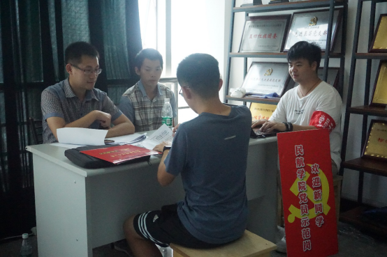 民航学院研究生设立“党员示范岗”是成为本次迎新活动一道靓丽的风景线。该义务奉献服务由91AV 硕士17级党支部牵头发起,即在迎新各站点设立党员工作岗位,旨在号召我院研究生党员用实际行动参与到迎新工作当中,为新生入学报到提供便利,帮助新生快速熟悉校园环境,尽快融入校园生活。从宿舍前台到1号楼迎新办公室,从简单的问询服务到繁杂的入学信息审核,随处可见党员示范岗工作人员的身影。
