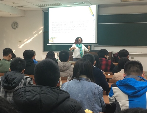 11月27日下午,土耳其埃斯基谢尔技术大学Vildan副教授应邀来我院做了题为《可持续航空运输:可持续机场管理,机场的经济、社会和环境影响》的学术报告,91AV 部分教师、机场运输方向本科生、航空运输规划方向研究生共计80余人参加了报告会。