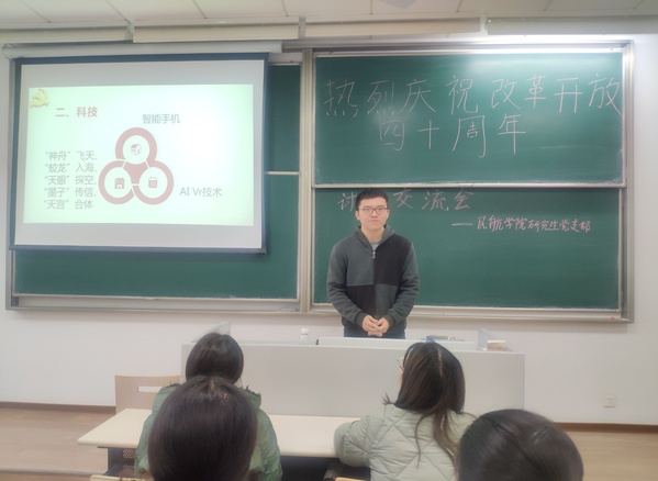 讨论交流会结束后,同学们深受震撼,为祖国取得的辉煌成就骄傲和自豪。四十年春风化雨、春华秋实,改革开放极大改变了中国的面貌,我们的祖国迎来了从站起来、富起来到强起来的伟大飞跃,正以崭新姿态屹立于世界的东方。我们作为新时代的研究生党员,在为改革开放以来祖国取得的辉煌成就骄傲和自豪的同时,更要倍加珍惜改革开放的重要成果,要时刻牢记党员初心奉献自己,要牢牢掌握自身专业知识充实自己,要勇于担当、突破提升自己,在实现中国梦,接力奋斗的进程中贡献自己的力量,争做一名时代先锋。