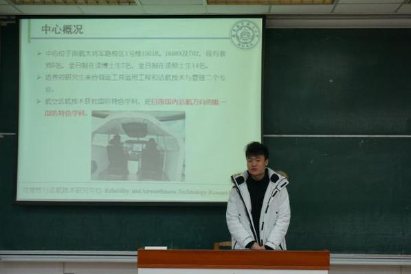 各位主讲人准备充分,力求用最简洁、最直观的方式将实验室氛围进行呈现,精炼却不失内涵;力求用最生动、最形象的比喻将实验室特点进行介绍,贴切却不失幽默。让每一位听众仅用简单一瞥便能全方位了解各实验室多彩的科研生活。“最活力”、“最创新”、“最干净”、“最绿色”,来自飞行性能与程序设计研究室的王倩同学用“四个最”概括了“五星工作室”的独特魅力。“成果丰富”、“国防特色”,来自可靠性与适航技术研究中心的杜方舟同学用两个核心词汇对中心进行了概括概况,并用丰富的成果与学术带头人,解释了91AV 为何会拥有目前国内适航方向的唯一国防特色学科。来自11906A实验室的周岩同学则以实验室精神为核心,通过“实验室环境”、“导师同门风采”等内容,对实验室团结融洽的科研氛围一一展开介绍,将一个团结向上、敢闯敢拼的实验室展现在师生们的眼前。