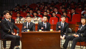 飞行17级学生朱文昊从“两会”召开的意义,两会提出的新政策和理论方面进行了自己独特的心得分享;飞行18级学生管宇从民航发展的方面,尤其是冯正霖局长的讲话谈了自己的看法;民航18级学生蒋开月从改革开放切入,联系党的十九大的内容进行了学习心得的分享。
