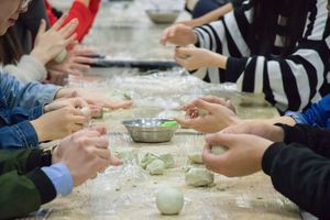 活动伊始,餐饮中心的工作人员提前为参与活动的同学们准备好了面团,馅料以及保鲜膜等相关材料,并且演示了青团的制作过程。稍作准备之后,接下来的时间就交给了同学们进行自由创作。