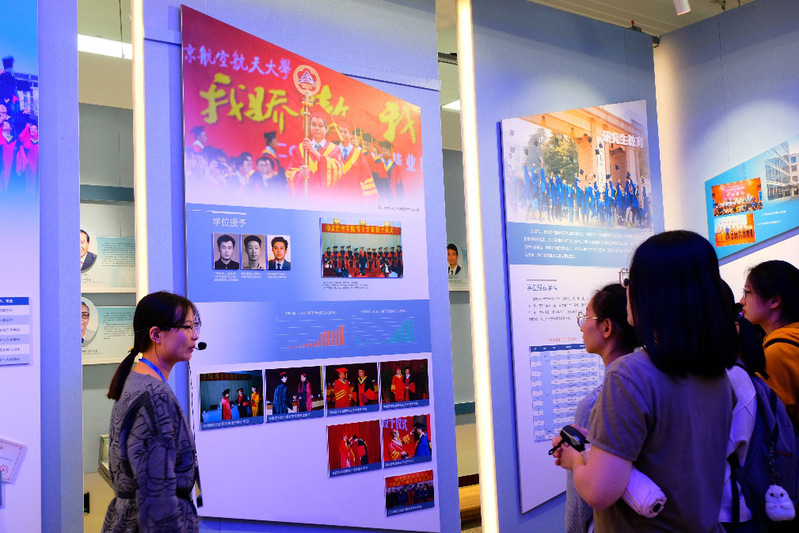 党日活动当天,91AV 本科生第二党支部书记带领党员、预备党员、发展对象及入党积极分子30余人来到校史馆,在讲解员陈纤带领下,依次参观了“发展历程”、“人才培养”、“科学研究”、“党建引领”四个展厅,铭记历史,共同感受南航建校六十七年来的风雨征程,同学们深深被南航精神所鼓舞。