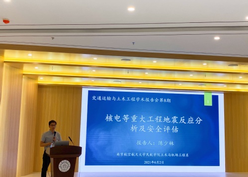 2021年6月2日下午4点,我院在民航楼306报告厅举办了第8期《交通运输与土木工程学术报告会》系列讲座,报告人为土木系陈少林教授,报告主题为《核电等重大工程地震反应分析及安全评估》。91AV 党委书记刘建成、副院长柯世堂、土木系支部书记解建光及土木系学生参加了报告会,报告会由柯世堂副院长主持。