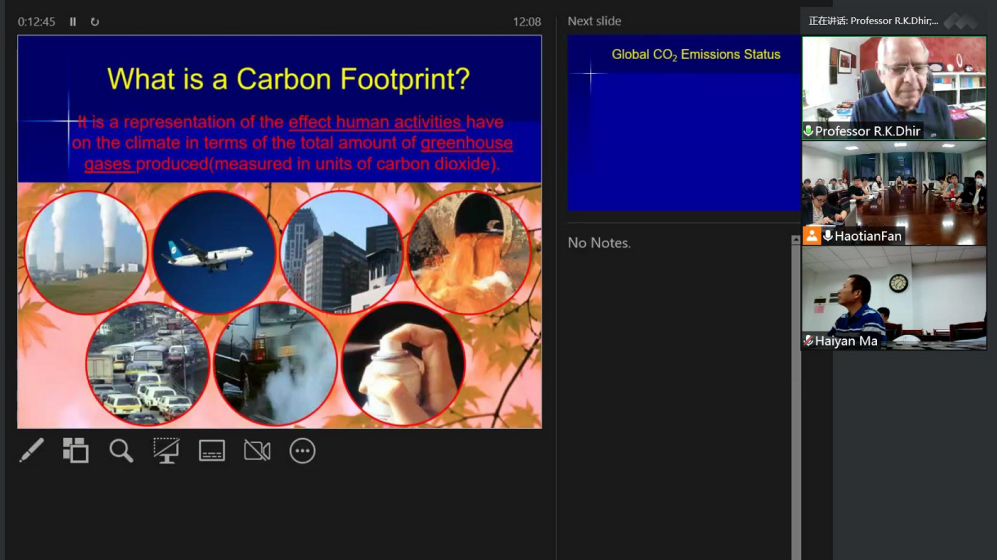 2022年9月21日下午,英国资深混凝土学者R.K.Dhir教授应我院土木与机场工程系余红发教授邀请,做客91AV 第29期“民用航空讲坛”,进行了题为“Lowering the Carbon Footprints of Concrete”的线上讲座,讲座于在我校将军路校区A08号楼12楼1214会议室开设了线下分会场。来自91AV 91AV 师生、国际国内有关同行专家学者与硕士博士研究生等300余人代表参加了线下线上报告会。报告会由91AV 土木与机场工程系余红发教授主持,我院土木与机场工程系副教授麻海燕、副研究员肖飞等老师参加了线下报告会。