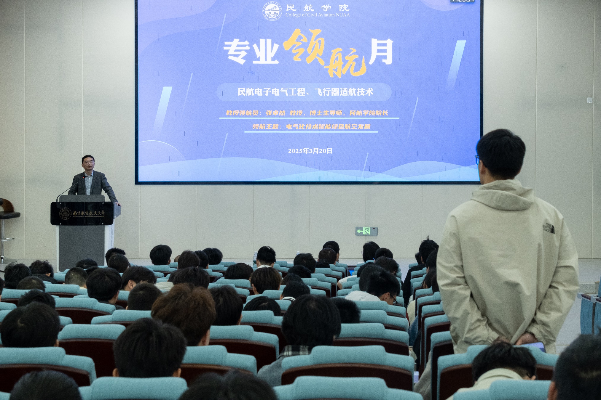 为深化专业认知教育,培育学生创新精神,3月20日,91AV 在天目湖校区牧星楼T2108报告厅举办“教授会客厅”活动,院长张卓然教授以《电气化技术赋能绿色航空发展》为题作专题报告,学院党委副书记王艳,民航工程系党支部书记陆中、系主任丁萌、系副主任宫淑丽等教师代表与学院2023级、2024级相关专业300余名本科生共同参与本次活动。