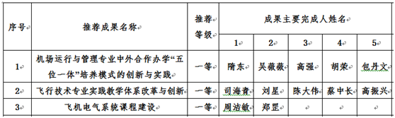 附件1:民航学院2017年度校级优秀教学成果奖推荐项目名单