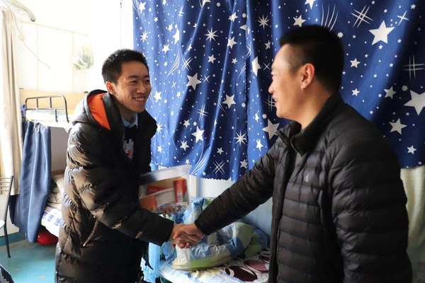 12月18日中午,91AV 党委副书记李和新、辅导员张秋寒以及91AV 15级党支部成员一起走进学生宿舍,慰问即将走上考场的考研学子,并给他们送去了考研大礼包。在寒冷的冬日里给他们送去了学院的温暖关怀。