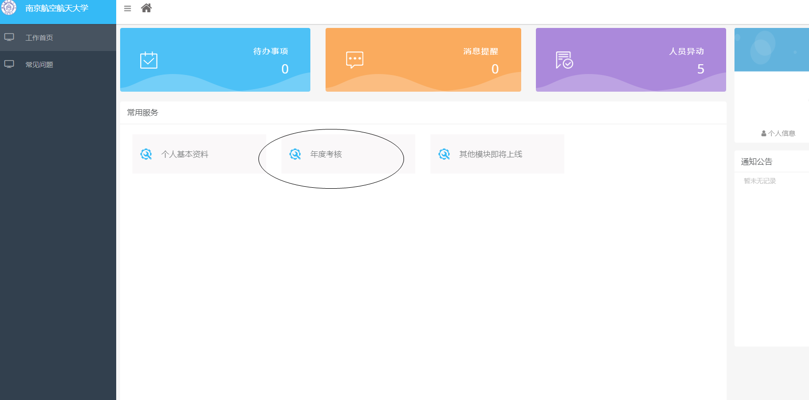 2. 教职工需登陆学校的新版人事管理信息系统//ehr.av-91.net,登录名为职工编号,密码为学校统一身份认证密码),在“年度考核”模块(12月15日起开放),填写个人年度考核表,并在线提交,并用A4纸正反面打印、签名后交至各系办主任处,由系主任签署单位考核评价意见后,统一交至学院。