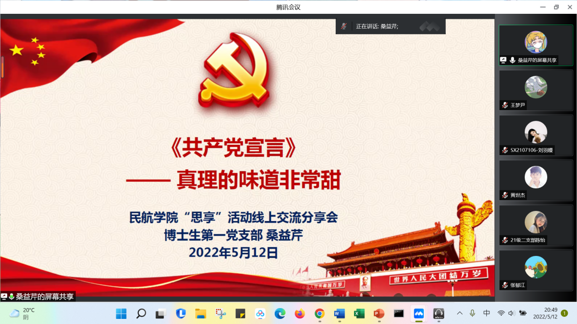 为认真贯彻落实习总书记关于党史学习教育的重要论述精神,营造良好的党史理论学习教育氛围,学习百年党史,汲取奋进力量,将红色基因融入血脉,民航学院组织各研究生党支部于2022年5月5日至18日推出“思享”计划·14天理论学习打卡活动,进一步提升党员们理论知识学习的主动性。
