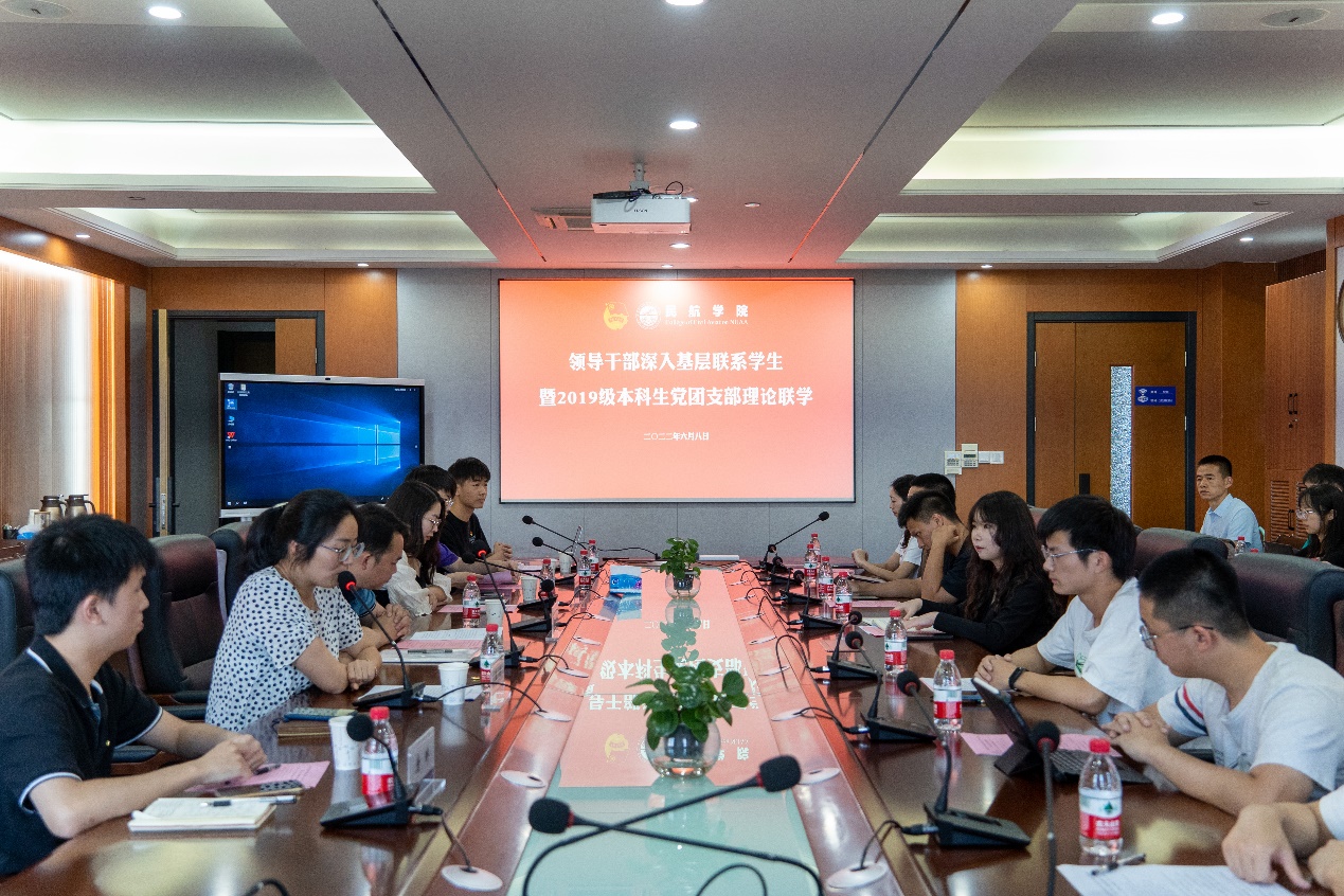 68日,民航学院2019级本科生第二党支部联合0719101团支部开展本年度第二次理论联学,共同学习习近平总书记在庆祝中国共产主义青年团成立100周年大会上的重要讲话精神。党委学工部部长、人武部部长、学生处处长侍旭,民航学院党委副书记王艳、团委书记赵慧文、19级本科生辅导员唐琳及党团支部学生代表参加本次活动,活动由王艳主持。