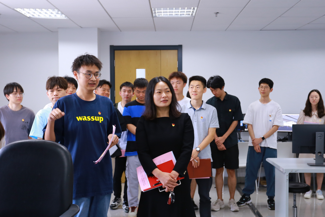 联学活动的最后,赵煜新带领与会人员一同参观了专业特色实验室——智能维修模拟实验室,张亚丽和同学们就专业特色、行业现状及未来发展进行了深入地探讨。