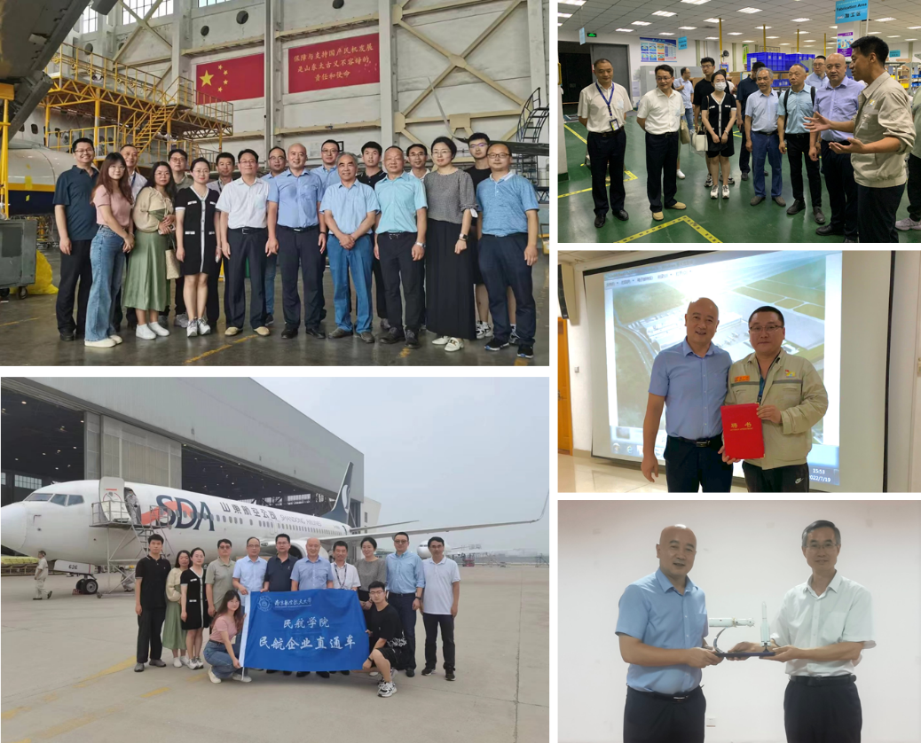 在济南遥墙国际机场,调研团观看了济南机场二期改扩建工程的宣传片及沙盘图,了解机场在改扩建后将具备的新功能、新亮点,深入感受“平安、绿色、智慧、人文”四型机场的牵引作用;在山东太古,调研团走入飞机维修机库,身临飞机维修、客改货现场体悟民航人为保障与支持国产民机发展做出的努力;山东太古董事长、我校优秀校友黄恩舫讲述了自己扎根民航的奋斗故事,表达了对母校的感激之情和希望学弟学妹坚定理想信念、投身民航强国建设的殷切希望。