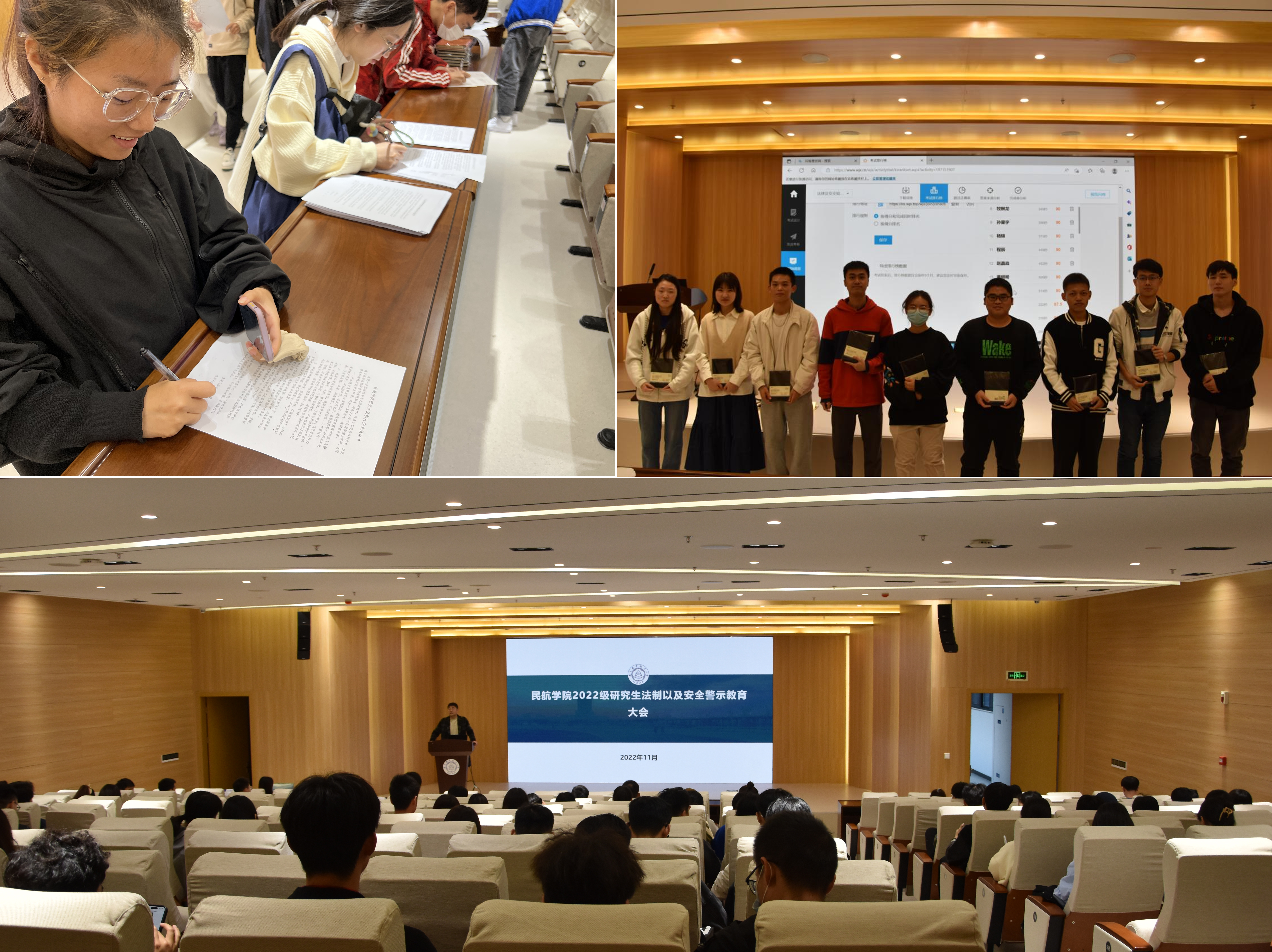 为进一步弘扬社会主义法治精神,传承中华优秀传统文化,全面提高我院学生安全意识,筑牢安全防线,根据学院《关于开展民航学院研究生法制及安全警示教育活动的通知》相关要求,民航学院于1125日下午召开2022级研究生法制以及安全警示教育大会,会议由研究生辅导员付昊主持进行。