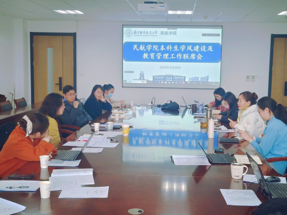 为落实党的二十大精神和学校第十七次党代会精神,落实立德树人根本任务,全面提高人才培养质量,进一步促进本科生学风建设,完善本科生教育管理工作体制,切实加强和改进学院本科生教育管理工作,3月20日上午,民航学院召开本科生学风建设及教育管理工作联席会议。学院党委副书记王艳、副院长田勇,各系负责本科生教学工作的副主任、本科生教学办、本科生专兼职辅导员参加会议。会议由王艳主持。