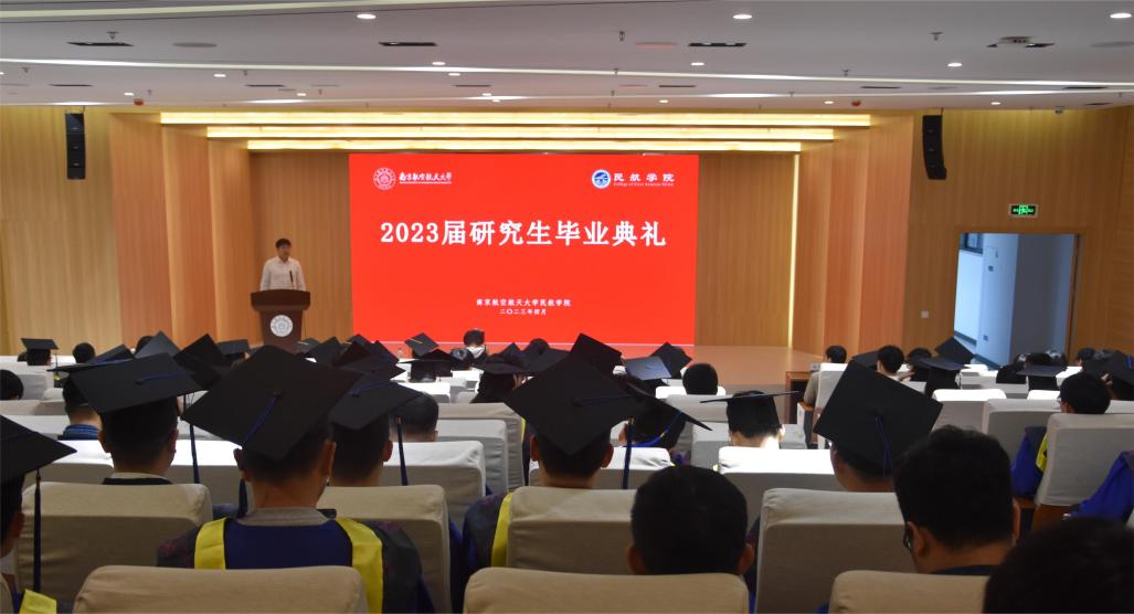 2023年4月6日下午4时,民航学院2023届研究生毕业典礼暨学位授予仪式在306报告厅隆重举行。学院党委书记刘建成、院长孙建红、党委副书记王艳、副院长吴薇薇、副院长田勇、各系负责人、导师代表以及学院相关科室负责人出席典礼,学院2023届毕业研究生共同参加本次活动,典礼由研究生辅导员付昊主持。