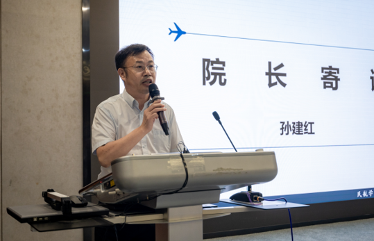 孙建红代表学院向2023级全体新生表示欢迎,期望最年轻的民航人不断增强学习内驱力,注重实践性、探究式、自主化的学习。鼓励同学们树立高远志向、保持奋斗底色,培养和提高扎实的专业素养、创新的科学思维和务实的工匠精神,努力续写民航人奋楫争先、笃定前行的精彩华章。