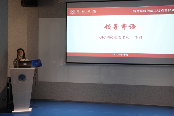 李君在讲话中指出,学院高度重视一流民航专业建设和一流民航人才培养,不断改进民航创新实践教育体系,致力将智慧民航创新工坊打造成明晰行业形势、职业规划、人生哲理的“前沿阵地”,践行自我管理、自主创新、自觉成长的“育人基地”,助推师生从游、朋辈互助、跨界交流的“乐享天地”,为同学们的茁壮成长保驾护航。她希望同学们坚守民航初心、热爱民航事业,提高学院荣誉感和行业自豪感,矢志创新、敢于实践,努力成为卓越民航人才。