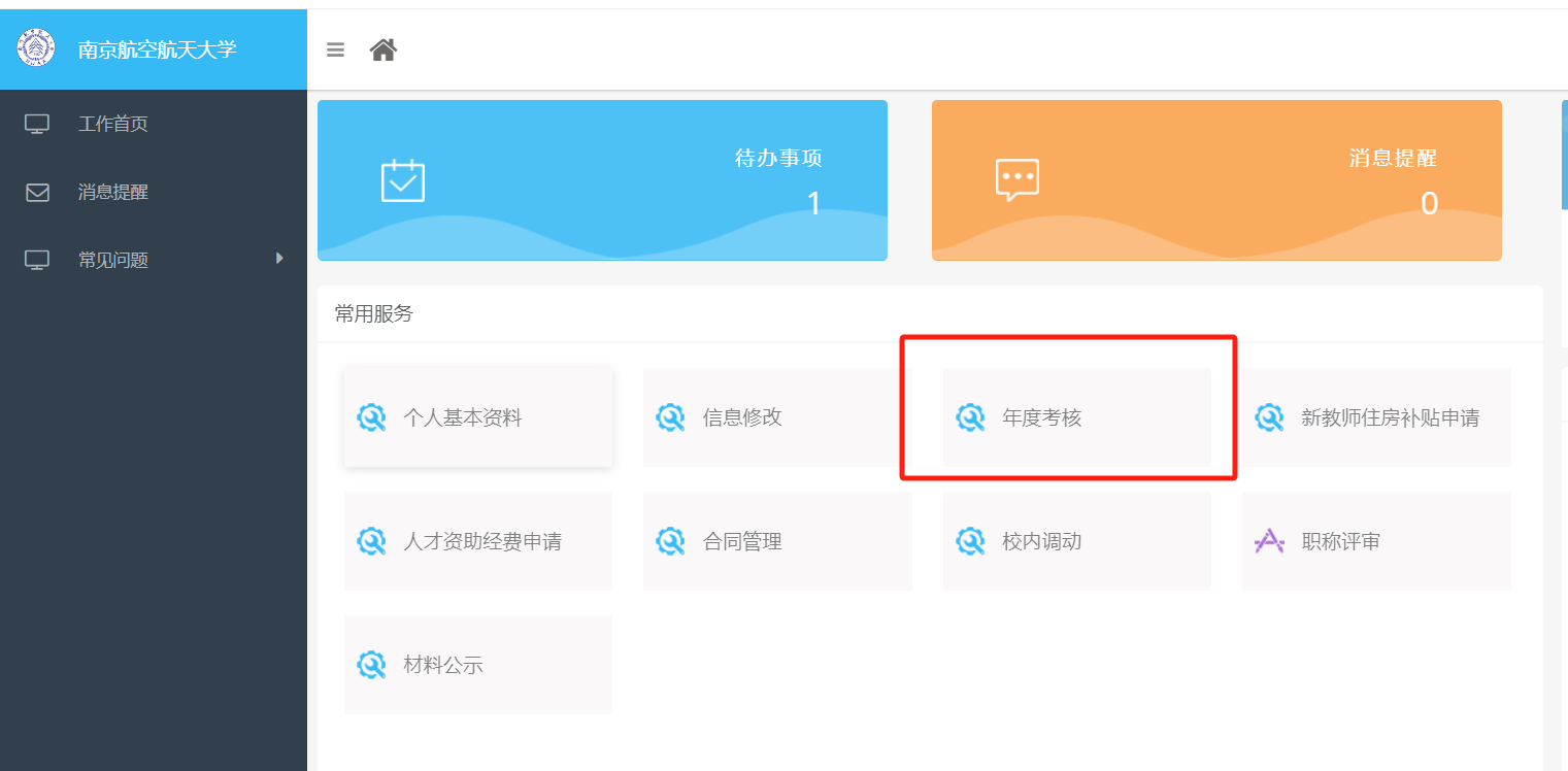 2.教职工需登陆学校的人事管理信息系统//ehr.av-91.net,(//ehr.av-91.net,点击自助服务栏目下“旧版人事系统”),进入“年度考核”模块(12月13日起开放),填写个人年度工作总结,在线提交年度考核并用A4纸正反面打印、签名后交至各系办主任处,由系主任签署单位考核评价意见后,统一交至学院。